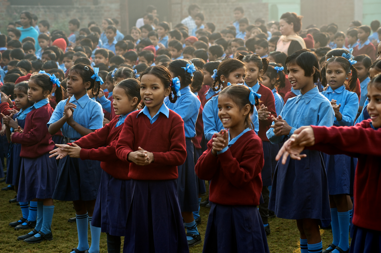 The students gather during morning assembly at the school, where they sing, and pray.
