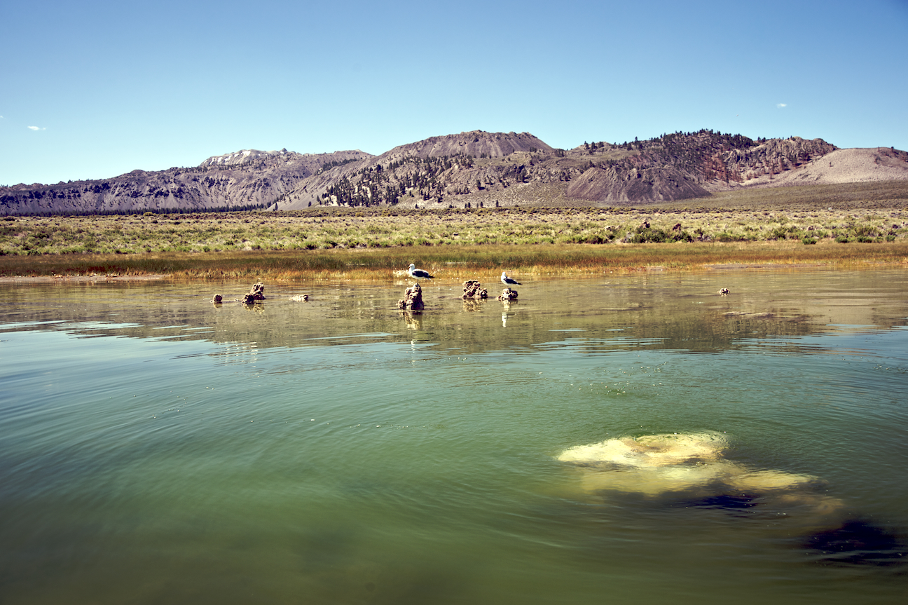 Tufa is a type of limestone that is formed when calcium-rich spring water mixes with the carbonate-rich Mono Lake water and precipitates around the spring. The towers grow underneath the waters surface. These towers were exposed when the city of Los Angeles diverted four of the five streams flowing into Mono Lake. Deprived of its freshwater sources, the lake volume dropped by half, exposing nesting colonies of gulls to predation and again doubling the lakes salinity. The entire eco-system began to collapse. In response David Gaines formed the Mono Lake Committee, a citizens group that was formed to reverse this trend and save the lake. In 1994 the California Supreme Court mandated that the lake should rise to a level of 6,392 feet, which will partially restore the ecosystem and migratory bird habitat.