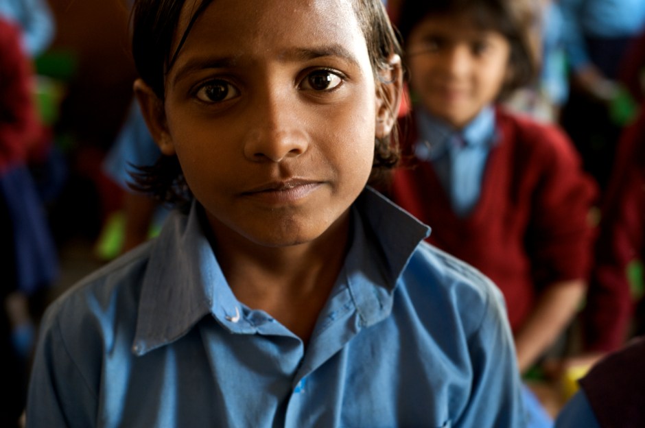 A young student at the Good Samaritan School in Madanpur, Khadar