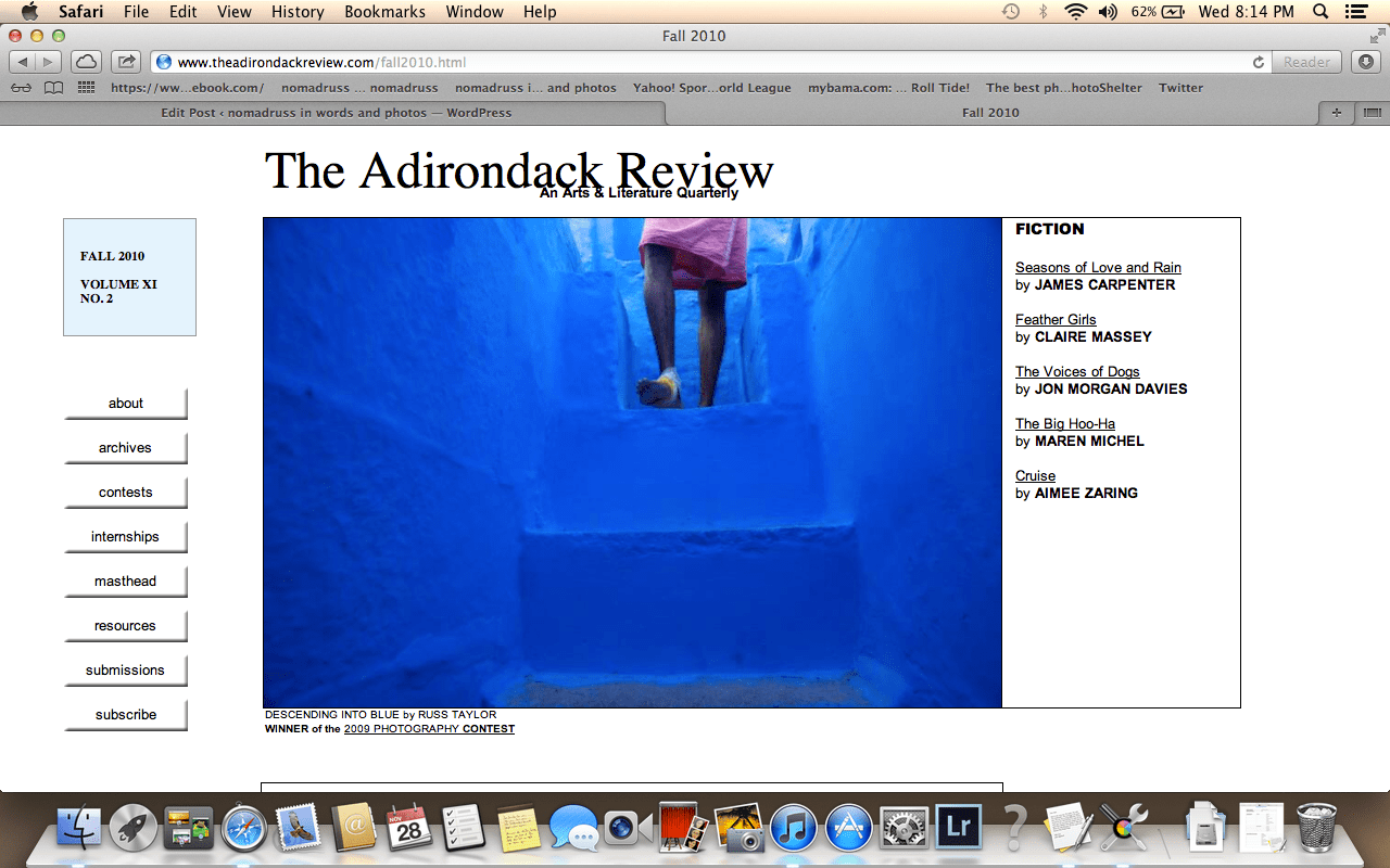 The Fall 2010 issue of the Adirondack Review showcased five of my images. You can find the images in this back issue of The Adirondack Review.