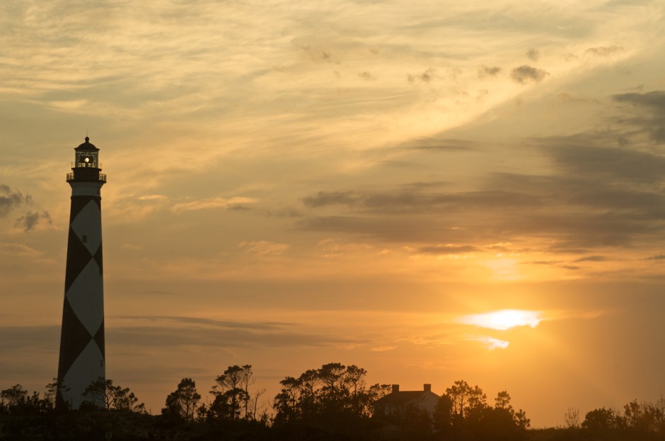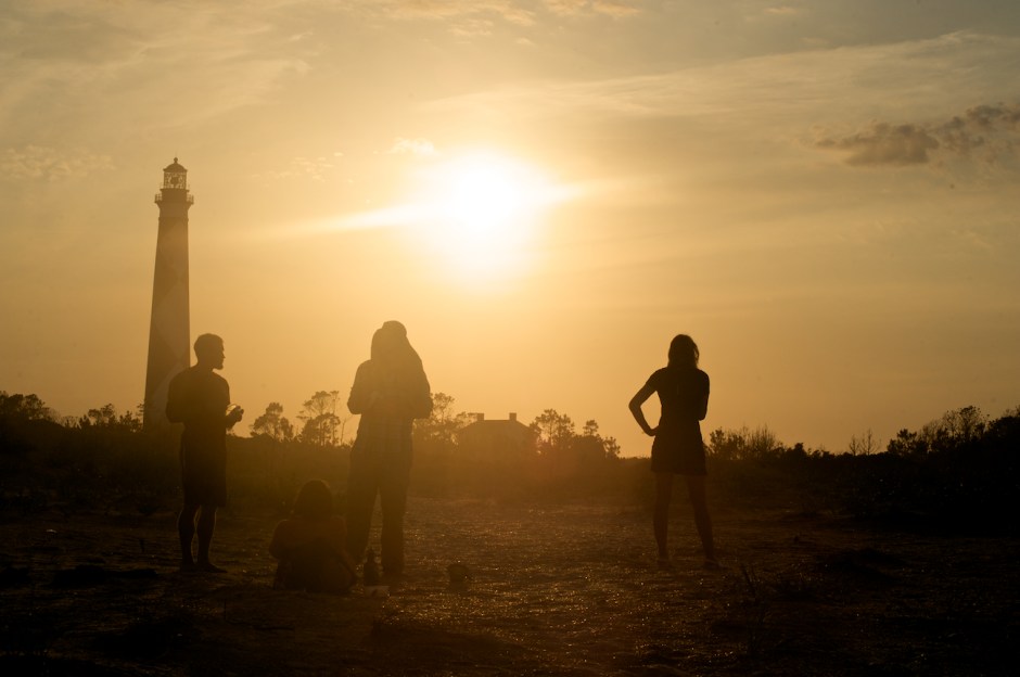 The lighthouses along the Outer Banks are most famous. Here, friends gather to camp on the Atlantic side near the Cape Lookout Lighthouse.