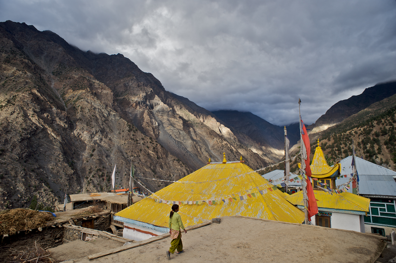 The setting in Nesang Village was spectacular. In the following image a young girl walks across a rooftop near one of the village monasteries.