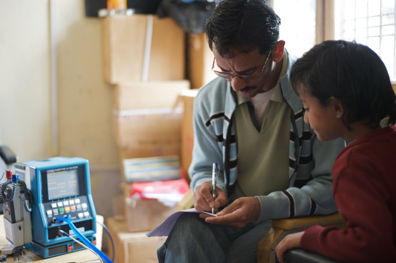 In the following image one of the medical workers consults with a boy and his mother concerning his treatment.