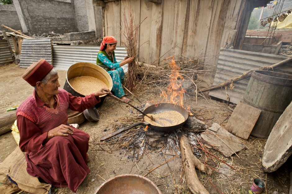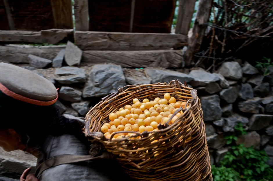Harvest season comes early to the Himalaya. Apricots and apples can be found in abundance from north India to Pakistan. This week’s look at Himachal Pradesh focuses on the season of growth and harvest in the Ropa Valley. The apricot harvest began in August and villagers collected them from the trees, herded them into baskets, and took them to their roofs to dry. The first fruits of the barley season were being collected as well, and flour would soon be milled from the roasted barley.