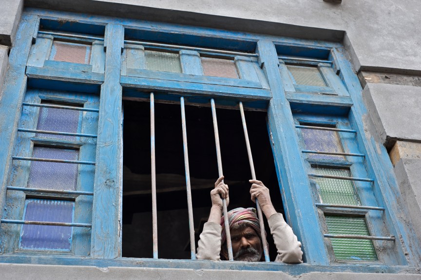 Along with Nepali laborers, laborers from the Indian state of Bihar are also found working in the Himalaya during the summer months. As the winter snows begin to fall they return to the plains. In this next image a Bihari laborer looks from a window in the village of Nesang.