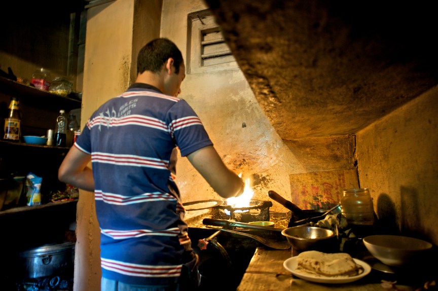 In the village of Giabong in the Ropa Valley there’s a small kitchen or two that produce some fine eats. The first two photographs show a man making some Indian bread for breakfast, and then a bowl of thukpa that was made in the afternoon. Thukpa is a noodle soup that has origins in Tibet.