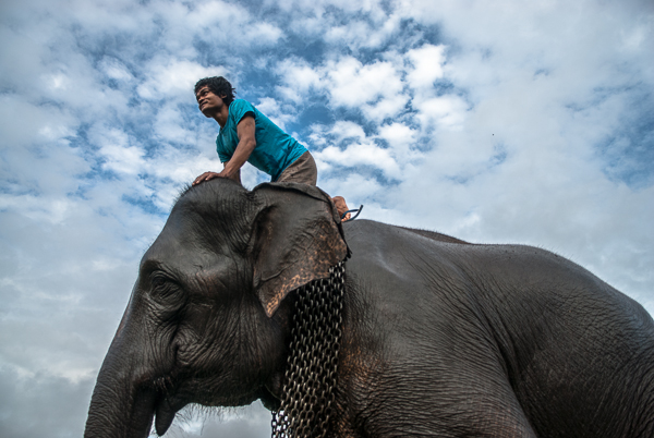 Elephants were originally used in Thailand to clear land that would be used for agriculture. Due to large deforestation the practice was outlawed and elephants are now used almost exclusively for the tourism industry. Below are two views of an elephant keeper washing his elephant in the Pai River after a day’s work and him riding the elephant back to the forest afterwards.