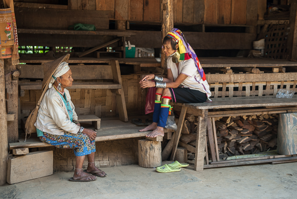There was an ethical question of whether you should even visit the Kayan people, who live in the Mae Hong Son district of Northwestern Thailand. As I was hoping to do a story on the refugee situation of the Burmese I felt I had no choice but to do so. Eschewing the normal tourist routes, as I am wont to do, I decided to visit on my own terms (aren’t there thousands of us who think we’re doing that). I decided to rent a motorbike and enjoy the ride through the countryside, pay the fee to enter the refugee village, knowing that my baht (the local currency) would go more directly to the local people. It is their only means of support as they are not allowed to own land in Thailand. While there were some who were clearly tired of cameras, I found that being on my own allowed for some good interactions and found that most of the people enjoyed when I asked them questions about their lives. I found that spending time with the people, and buying a few products from them, and exchanging some smiles made the trip more than worthwhile.