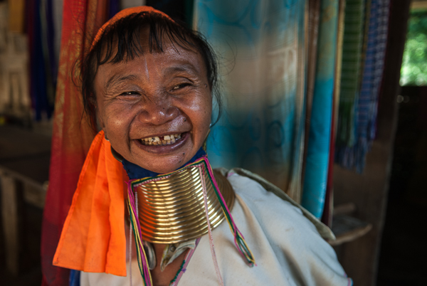 There are a couple of theories as to how the wearing of brass rings on the neck originated, although the women themselves cannot say with certainty. One theory originated in Kayan mythology. A beautiful dragon with a long neck was said to have been impregnated by the wind, giving birth to the Kayan people. The more practical theory surmises that the practice started as an effort to protect the women from tigers, which were a great danger in the Burmese jungle. The brass rings protected their necks from tiger attacks and have stayed on as a symbol of beauty.