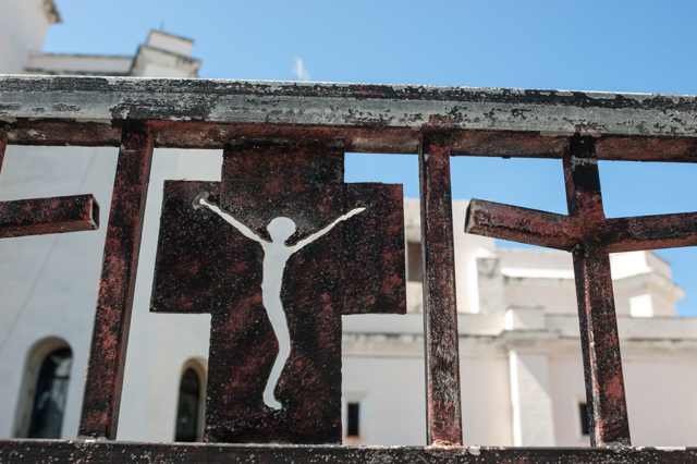 I very much enjoyed these photos! I especially like the one with the votive candles…there was something quietly beautiful about it. It seems like close-ups of candles, fires, lights, etc. are photos everyone tries to take but are actually difficult to pull off. Yours doesn’t look cheesy at all. I also think the design of the cross with the stick figure Jesus is neat, different from what you normally see. And I definitely want to try those burgers!