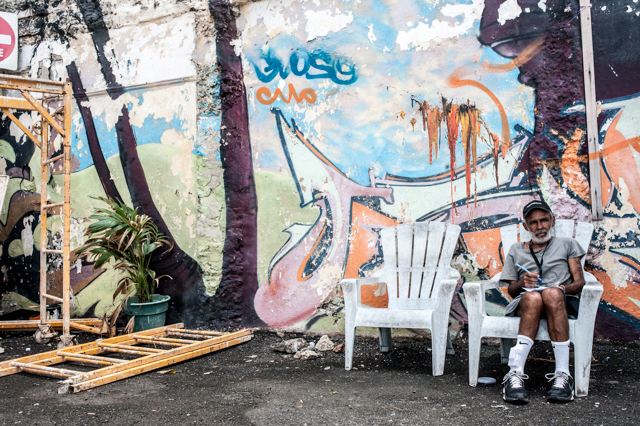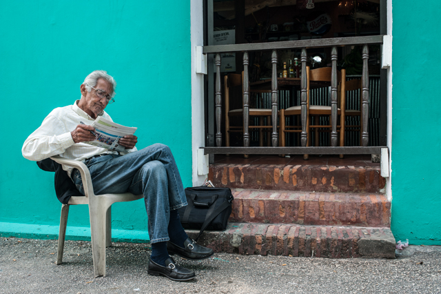 Oh, I love the photo of the man reading the newspaper by the turquoise wall. Great work.