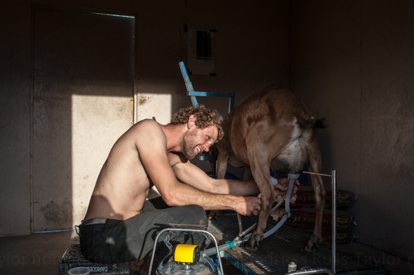 Jesse Ward is from Salt Lake City. He wanted to get out of the city and wants to farm full time. I’d say he’s well on his way. He knows much about farming and has a clear love for the land and the life style. I was with him one evening as he milked the goats, a regular chore.