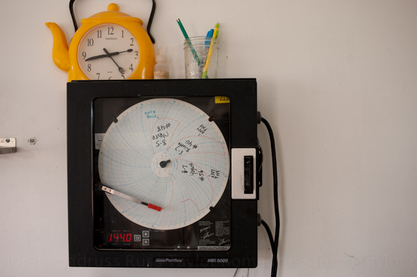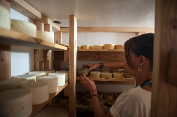 A big part of the work involves the making of cheese. It appeared to me a lengthy and delicate process. The following images show a temperature gage related to the underground cellar where the cheese is aged, Meagan turning the cheese in the cellar and the finished product ready for sale.