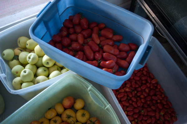 While there was still daylight, Megan was out picking beautiful, organic tomatoes.