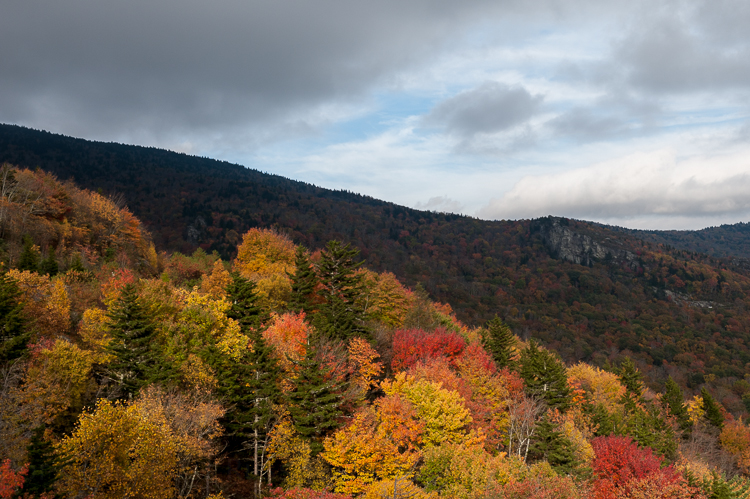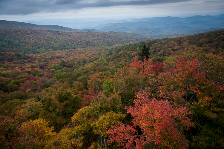 I only had a couple few days to photograph in the North Carolina mountains this fall. It seemed as though whenever I got on the Blue Ridge Parkway it was overcast. The overcast sky does sometimes bring out the colors that would otherwise be overwhelmed by direct sunlight. While I missed out on magnificent light, I took the challenge to make the best under given conditions. So without further adieu, these are the images I made this year in the Blue Ridge Mountains of North Carolina.