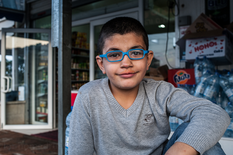 Upon reaching Cana and checking into our guesthouse, I decided to walk to the top of the city to take in a photographic view. A young boy, Hesham Abo Khalf, noticed that I was looking for such an advantage and invited me into his home and onto the rooftop. He gave me water and a banana and invited me to stay for supper. The family’s hospitality incredibly gracious and I wished to have been able to stay with them longer. The first photo is of Hesham, and the following three are of his neighbors and a young boy down the road with blue glasses.