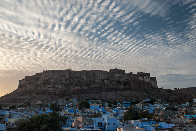 Beneath Mehrangarh Fort, which rests on the high point of Jodhpur, lies a city painted in blue. Blue was once a symbol of belonging to the Brahmin cast, the color now appropriated by all city dwellers. Today blue can be found throughout the meandering narrow alleyways. From high atop Mehrangarh Fort, or looking towards it, one sees a city awash in blue.