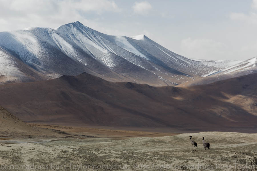 On this trip we would be treated to some wildlife encounters. There used to be only 3 or 4 breeding pairs of black-necked cranes in Ladakh, mostly near Tso Moriri Lake, while all the rest were on the Tibetan side of the Changtang. This year there were not only black-necked cranes near the Tso Kar lake, but also the ruddy shelduck. Both were found in relative abundance. A few images of them against the landscape are included here too.