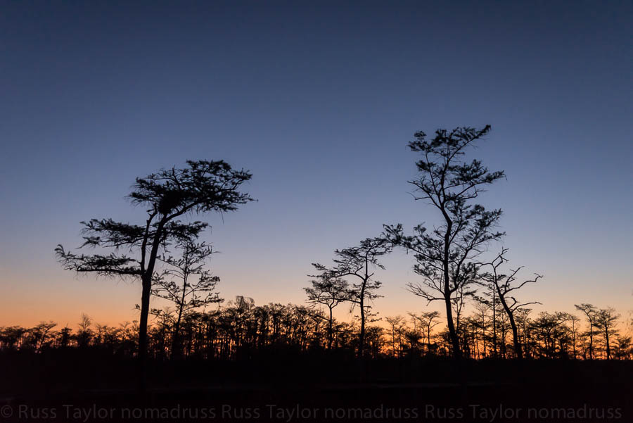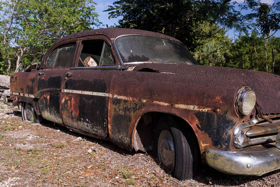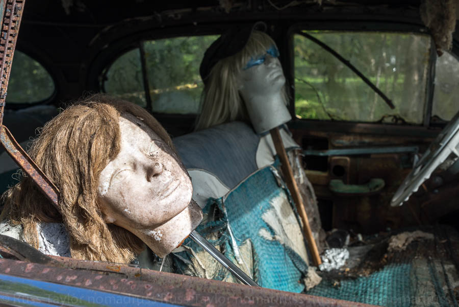 I was wandering the backroads of the Everglades, deep among the cypress, when I ran across an old automobile. There appeared to be people inside. They’d apparently been there for quite some time. Indeed, they had been.