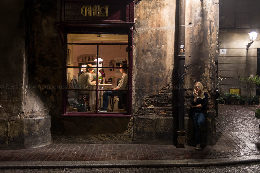 My favorite image is the girl smoking outside the restaurant. Very interesting shot with so many elements: the corner, the window, the contrast of dark and light and the people’s expressions. Just perfect.