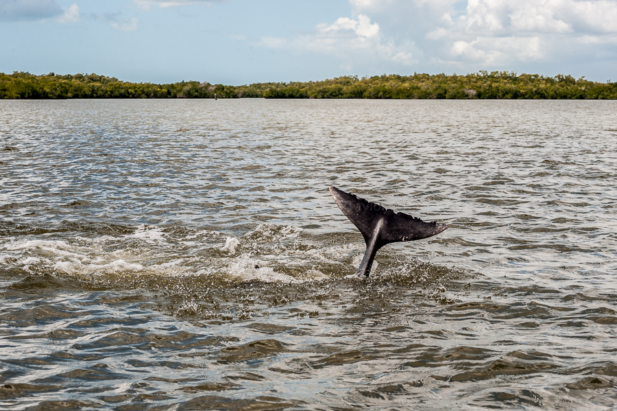 A dolphin rounds up some fish in Chokoloskee, Florida