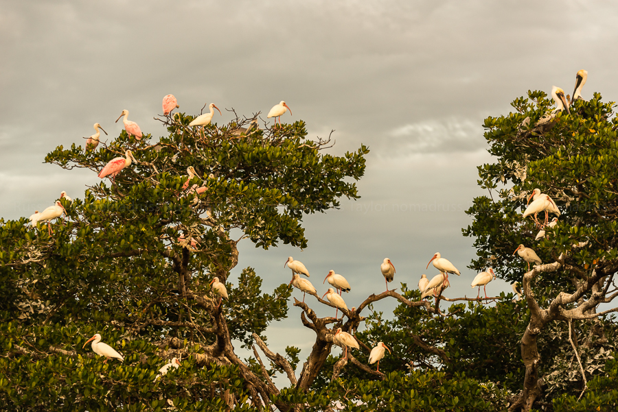Here Ibis roost in Chokoloskee Bay in the Everglades, along with next weeks bird, the Roseate Spoonbill