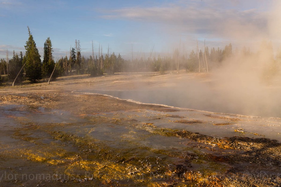 The earliest hours of summer are still often cool enough, in the 40’s, to cause steam from the hot springs to overflow into the morning.
