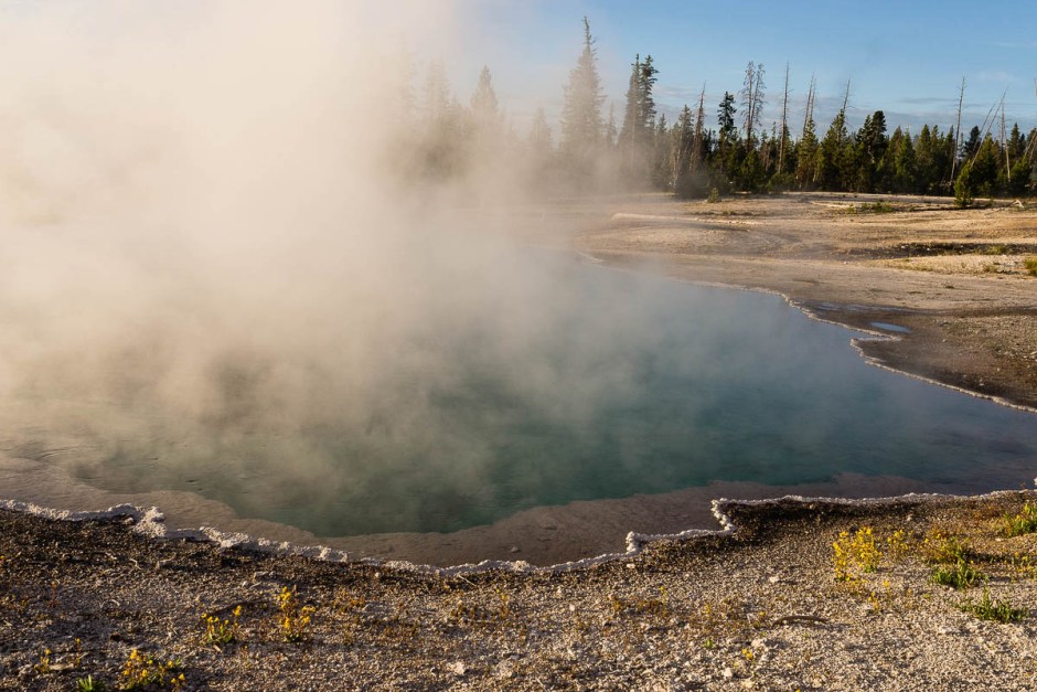 West Thumb Basin rests along the edge of Yellowstone Lake, a perfect setting in the early morning hours.