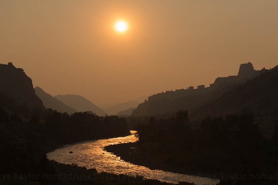 It’s been a smoky week in Yellowstone, what with the fires burning across Idaho and the winds blowing towards the east. While it dulled much of the light during the day, at dusk the red orb filled the horizon with hues normally unseen.