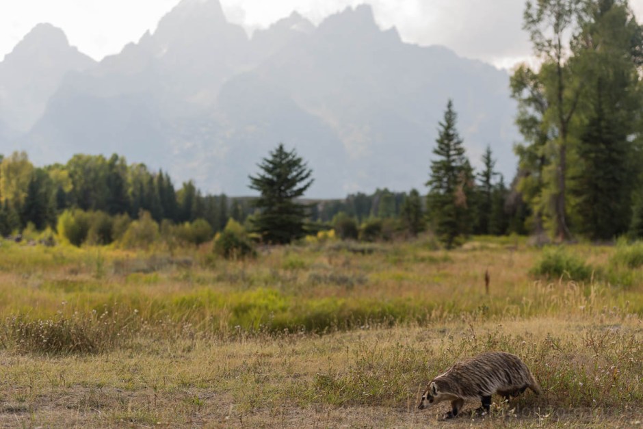 While scouting a location for evening photographs we were both surprised and delighted to find one of the Grand Tetons lesser-celebrated mammals, the badger. Teton badger didn’t care, he let make his photograph and follow him around for a bit while he searched for his favorite meal, the ground squirrel.