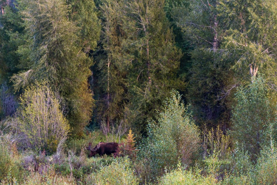 We knew the sun would soon be setting and the sky looked as though it might hold some color that evening. We decided to head down towards Gros Ventres, just above Jackson, WY, an area reputed to have occasional moose sightings. We raced against the sun, hoping we might make it to a photographic location and not miss the light.