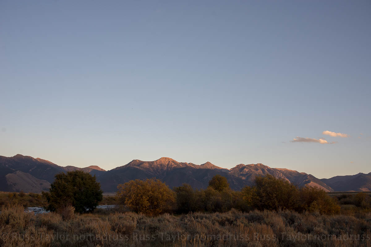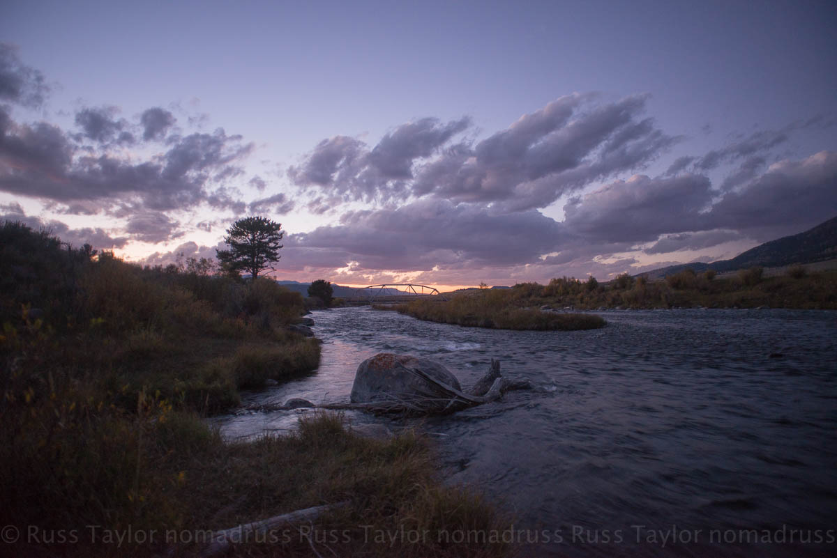 We checked the moon app, noticed that it should be rising from 274 degrees and adjusted the compass until I had a pretty darn good idea of where the moon should be rising on the horizon. Looking east the skies were clear. “Well done,” I told my friend. The skies were beautiful in the west as well; purple light fell over the Madison River.