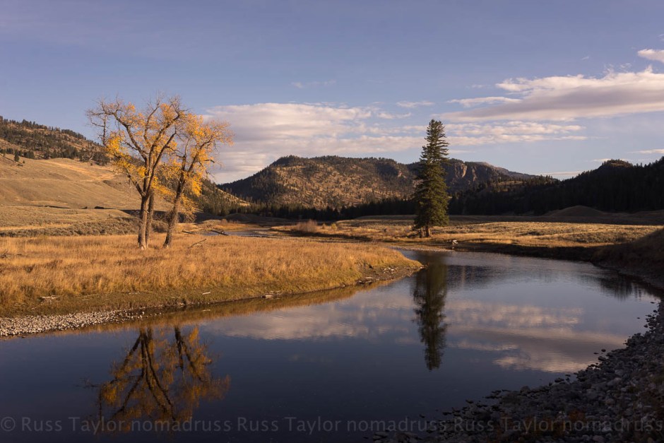 It was time to find Fall in Yellowstone. I kept heading to the Tetons as the abundance of deciduous trees made for a natural setting to observe the changing seasons. One day I decided to see what I could find in Yellowstone. I found one cottonwood tree along Slough Creek, and several others along the Lamar Valley.