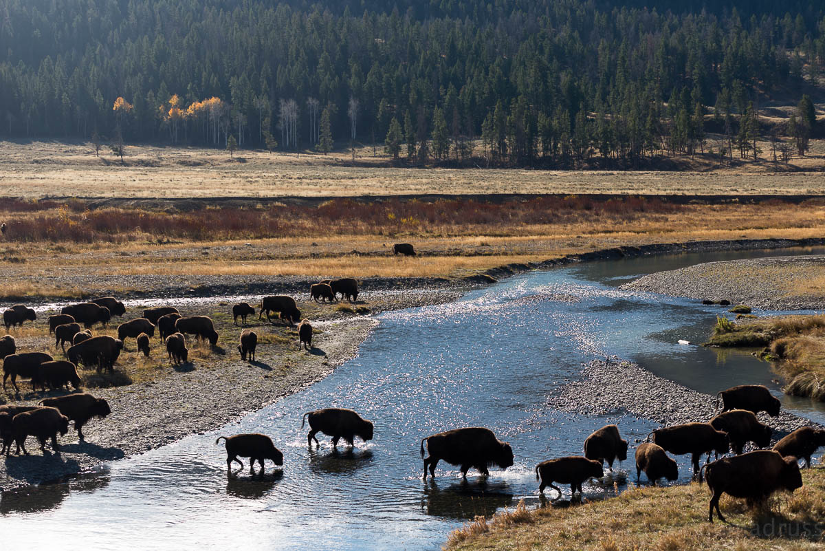 While we naturally associate Fall with the changing colors of the leaves, it’s the golden grasses, and the bison in abundance that came to symbolize a Yellowstone Autumn for me.