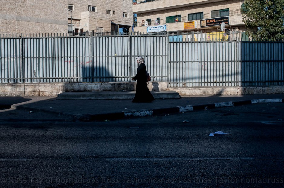 A muslim woman walks along the street on the hill above the Mount of Olives