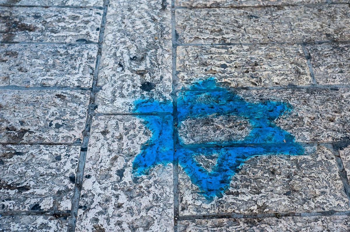 The Star of David painted on the old cobblestone pathways in Jerusalem.
