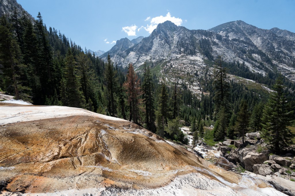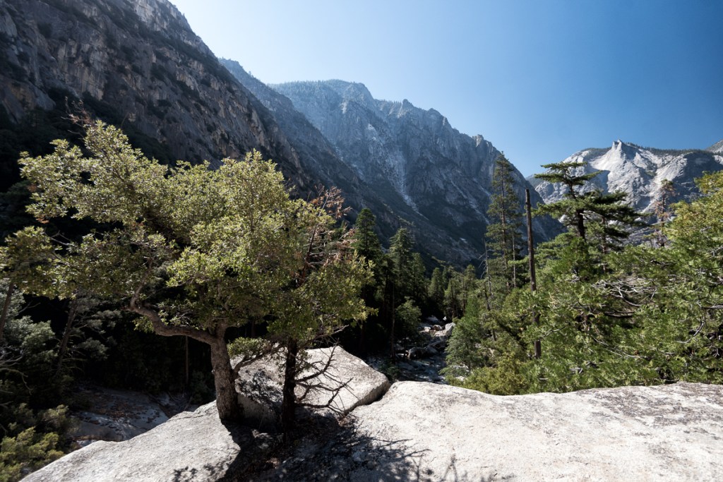 I started from Road’s End before 6:30am and by 7:30am I was on the switchbacks leading up towards the canyon Bubbs Creek flows through. There were 18 switchbacks, I counted, and two more about half a mile later. The switchbacks immediately allowed enough gain in altitude for views looking back up the canyon. It was a most promising start.