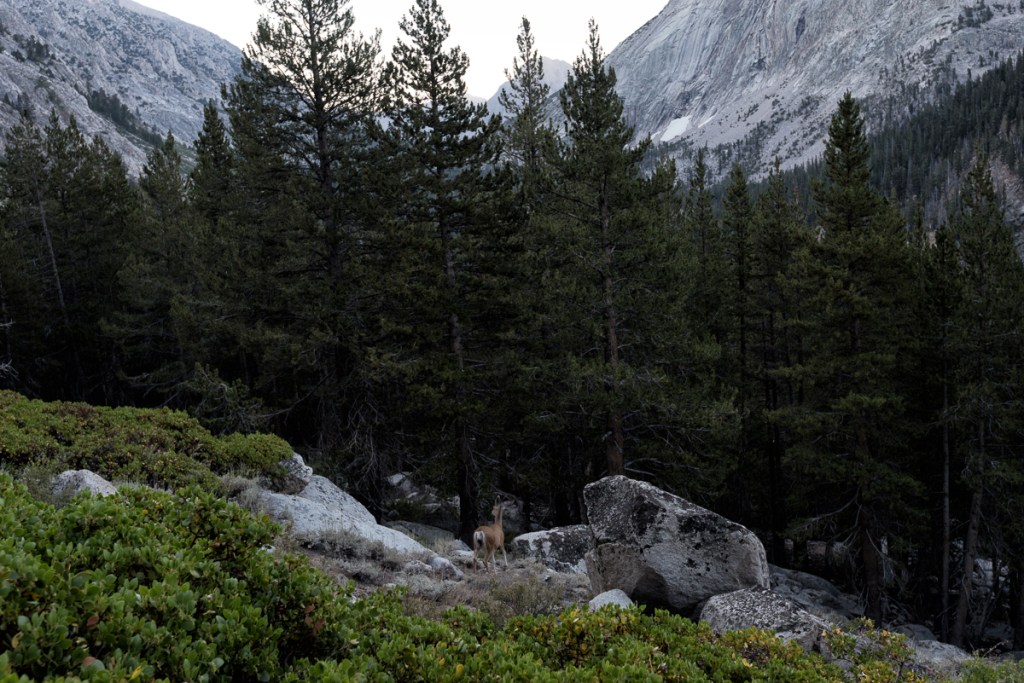 At Vidette Meadows I was on the cusp of walking along the John Muir Trail once again. It was a lovely evening as deer fed along the edges of the meadow and evening light cast a glow on the high peaks.