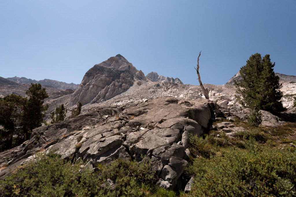 Eventually you pass the junction with the Kearsarge Lakes Trail and immediately ascend even more switchbacks. By having hiked all the way to Vidette Meadows the day before it gave you the energy of the morning to actually enjoy the walk. Finally you gain a plateau and basically contour for a period of time across a broad meadow. The mountains of Glen Pass come into view for the first time. You’re officially in the high country. And you suddenly started writing in the third person.